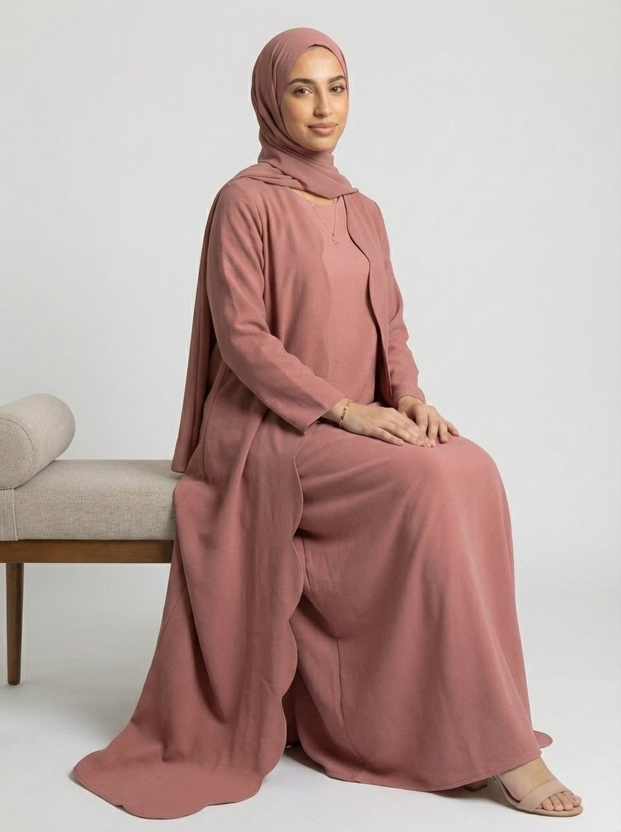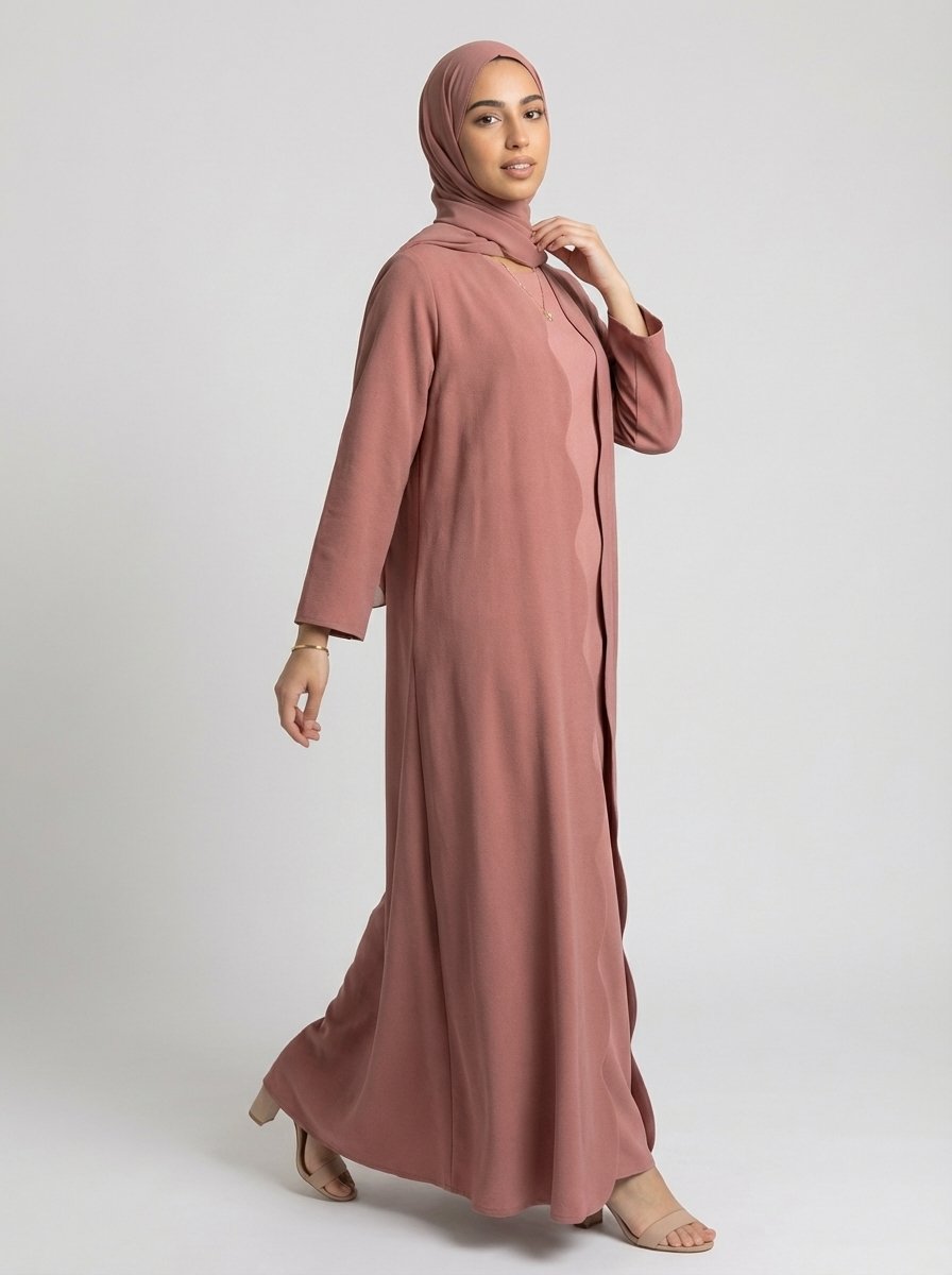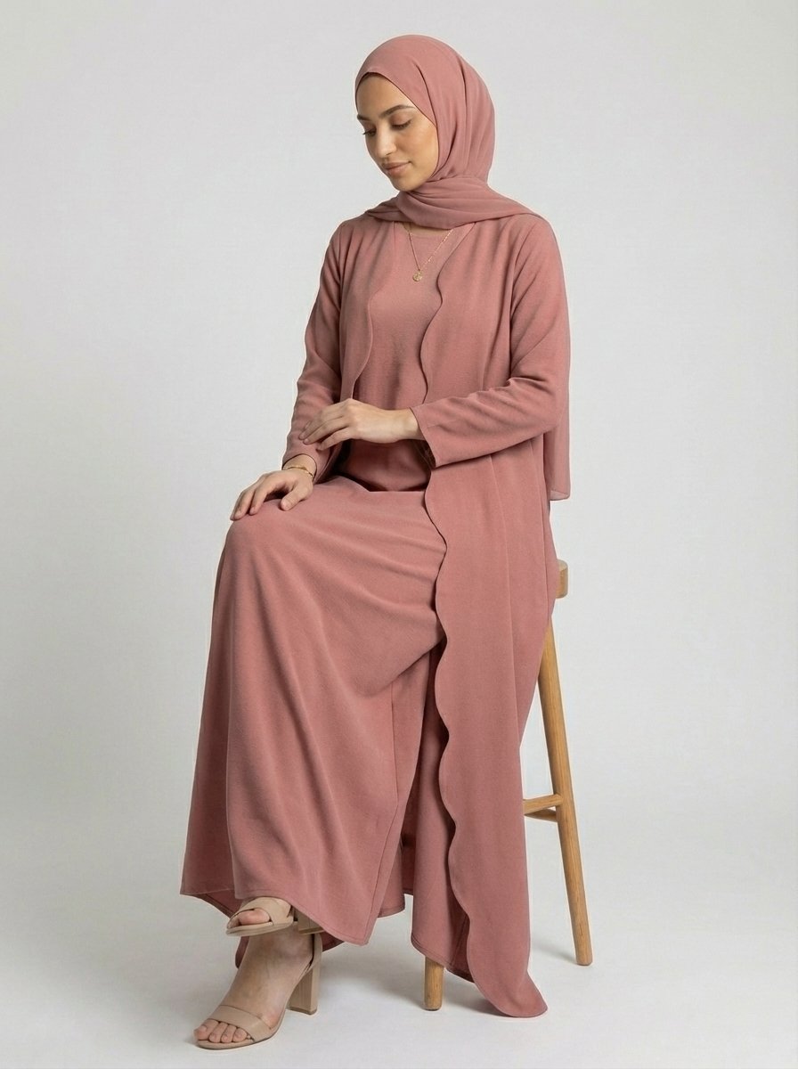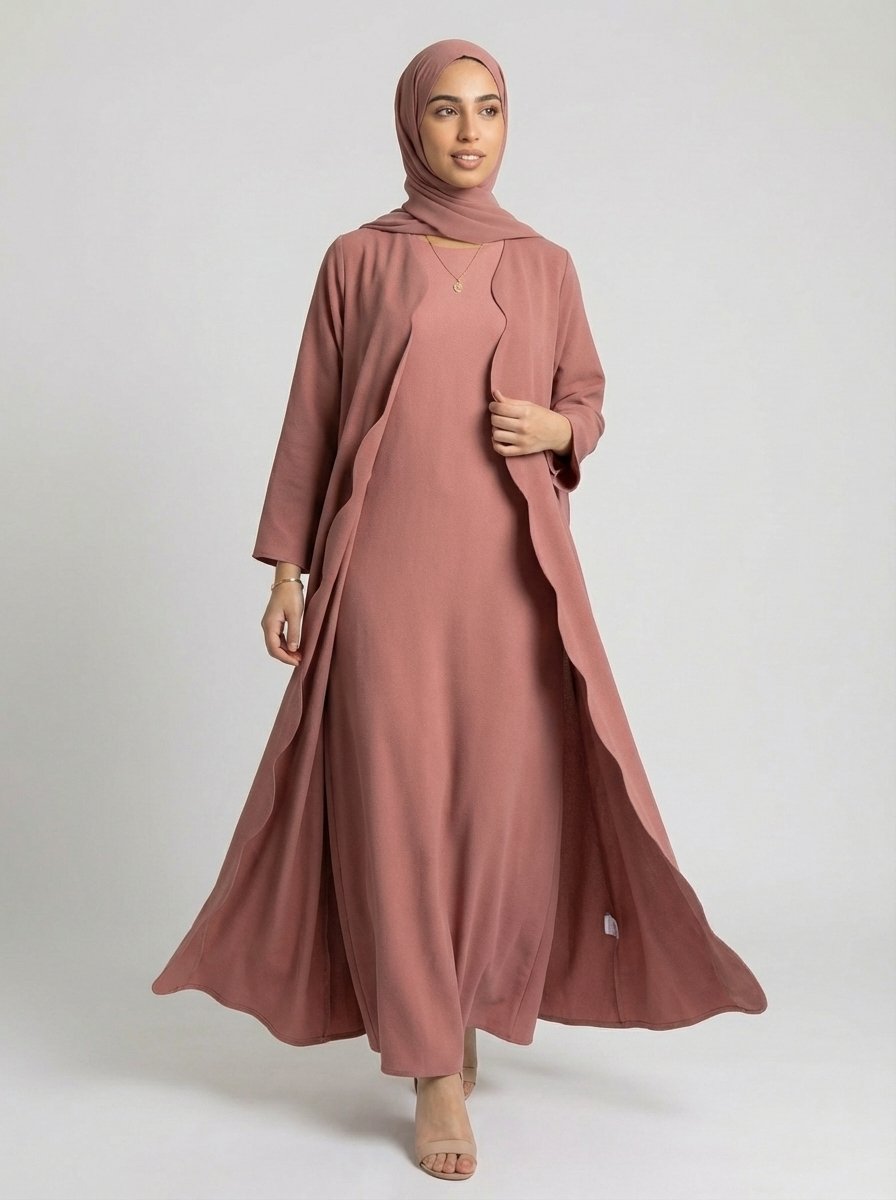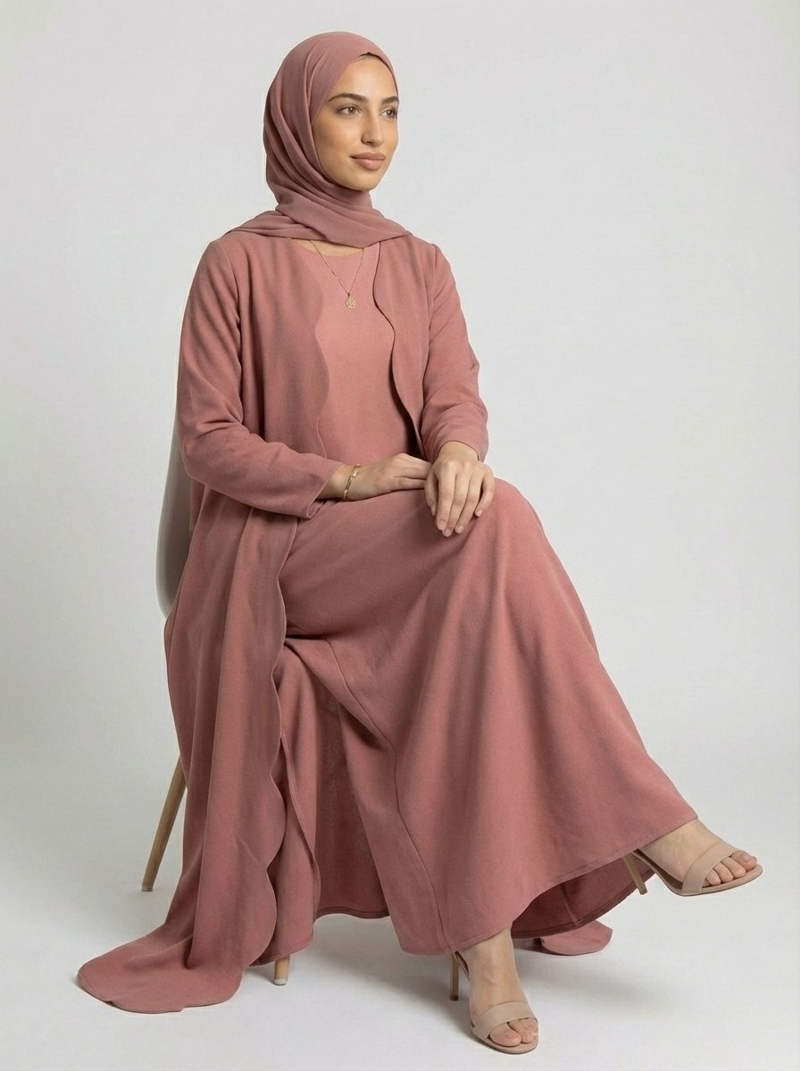 Be the first to review “Dusty Rose Scalloped Edge Open Front Abaya”